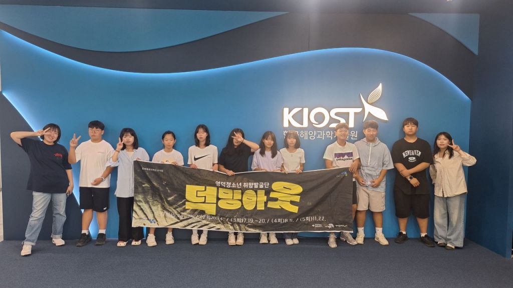 4차 '덕밍아웃' 참가 청소년들이 한국해양과학기술원(KIOST)을 방문해 해양과학 연구 현장을 탐방한 후 기념 촬영하고 있다. 영덕문화관광재단 제공