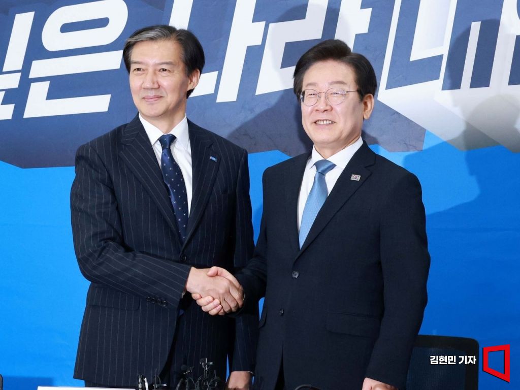지난해 8월 당시 이재명 더불어민주당 대표가 조국 조국혁신당 대표를 예방했을 때의 모습. 김현민 기자