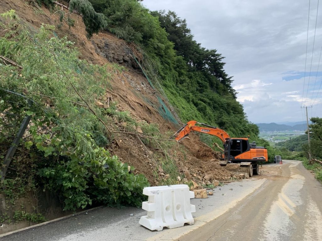 헙천군 초계면 신촌저수지 농어촌도로 101호선 산사태 응급복구.