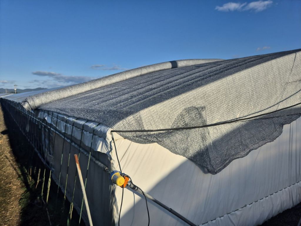 차광막과 차열제는 시설하우스에 유입되는 태양광을 차단하고 내부 온도를 낮추는 효과가 있어 폭염에 따른 작물 생육 장애, 품질 저하, 생산량 감소 등을 예방하는 데 크게 기여한다.