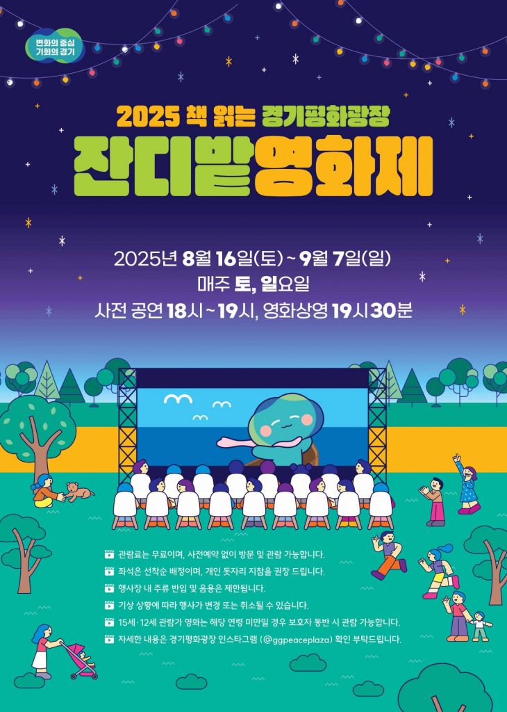 경기도는 오는 16일부터 9월 7일까지 경기도청 북부청사 경기평화광장에서 매주 토요일·일요일 총 8회에 걸쳐 '2025 경기평화광장 잔디밭 영화제'를 연다고 12일 밝혔다.