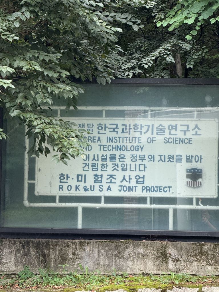 한국과학기술연구원(KIST) 입구에는 미국의 원조가 시발점이었음을 알리는 입간판이 세워져 있다. 사진=백종민 테크 스페셜리스트