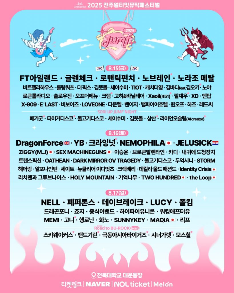 특히 올해 JUMF는 ▲스탠딩존 ▲피크닉존 ▲그늘막존으로 구성돼 무더운 여름 날씨에도 관람객들이 열정적인 뮤직페스티벌을 즐길 수 있도록 준비됐다.