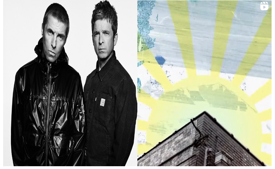 영국 록밴드 오아시스(왼쪽)와 최근 공식 사회관계망서비스(SNS)에 올라온 욱일기 형상 이미지. 오아시스 인스타그램 캡처