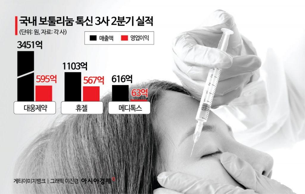 국내 보툴리눔 톡신(보톡스) 대표 기업인 대웅제약·휴젤·메디톡스가 2분기에도 나란히 성장세를 이어갔다. 미국·중남미·아시아·중동 등 주요 해외 시장에서 판매가 확대되면서 K뷰티 열풍과 맞물려 톡신 수출이 호조를 보였다. 업계에서는 3사의 경쟁력이 글로벌 시장에서 입증된 만큼 하반기에도 성장세가 이어질 것으로 전망하고 있다.