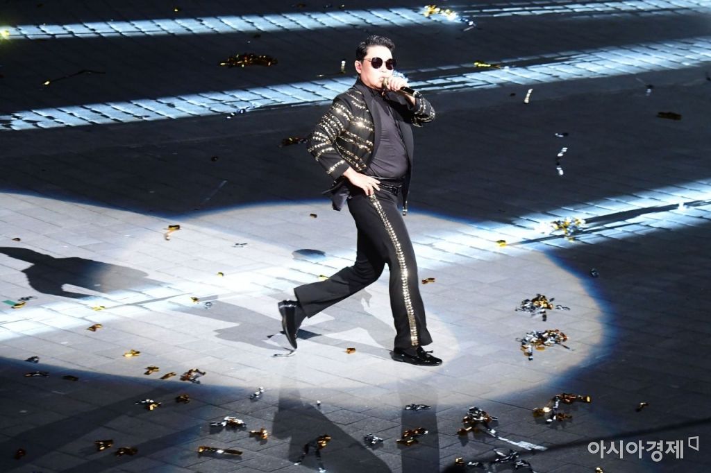 가수 싸이가 열린 제70주년 국군의 날 기념식에서 축하공연을 하고 있다. 사진공동취재단