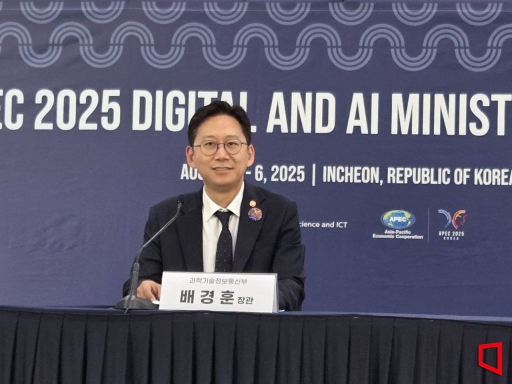 배경훈 과학기술정보통신부 장관이 지난 4일 오후 인천 송도컨벤시아에서 'APEC 디지털·인공지능(AI) 장관회의' 직후 기자들과 만나 회의 성과를 발표하고 있다. 노경조 기자