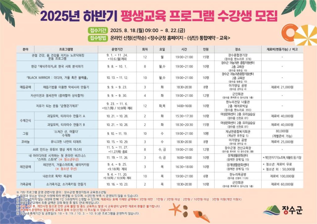 2025년 하반기 평생교육 프로그램 홍보 포스터. 장수군 제공