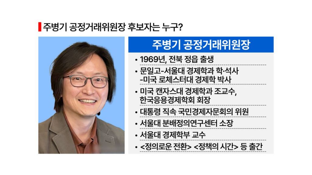 이재명 정부 경제팀의 마지막 퍼즐이 맞춰줬다. 주병기 서울대 경제학부 교수가 공정거래위원장(공정위원장)에 지명됐다. 장관급에 임기 3년이 보장된다. 공정위는 이재명 대통령이 강조한 '공정 경제'를 앞장서 실현할 책무를 담당한 기관이다. 이번과 마찬가지로 인수위 없이 출범했던 문재인 정부 때는 경제팀 가운데 공정거래위원장이 제일 먼저 지명됐다. 이번처럼 교수 출신인 김상조 위원장이 등장했다는 것을 빼면 순서는 그때와 정반대다.