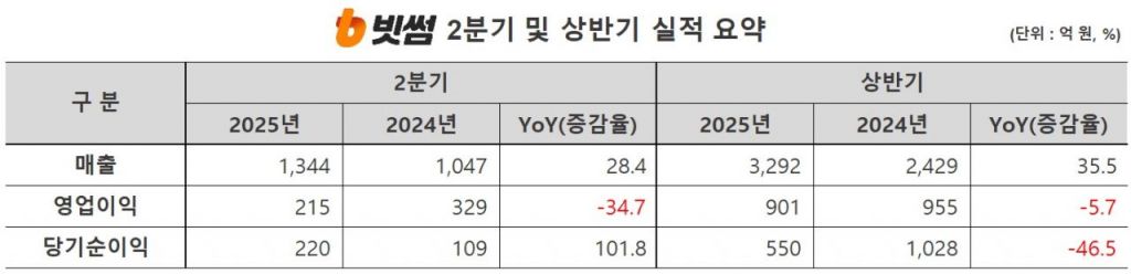 2분기 실적은 매출 1344억 원, 영업이익 215억 원, 당기순이익 220억 원을 기록했다.
