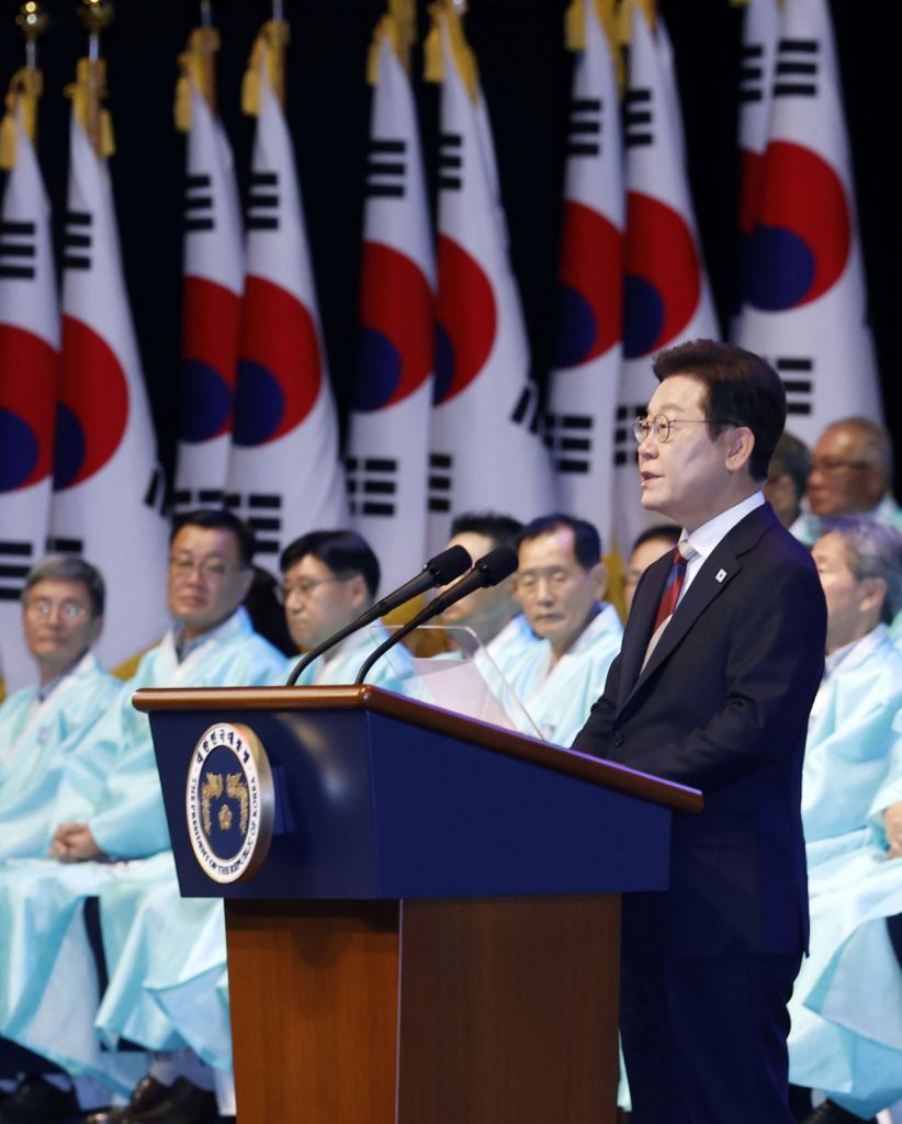이재명 대통령이 15일 현재 북한의 체제를 존중하고 어떤 형태의 흡수통일도 하지 않겠다는 뜻을 밝혔다. 그러면서 북한과 신뢰 구축을 위해 '9.19 군사합의'를 복원하는 한편 한반도 비핵화를 위해 남북, 미북 대화와 국제사회의 협력을 통해 평화적 해결의 실마리를 찾겠다고 했다. 일본과는 국익중심의 실용외교의 원칙으로 셔틀외교를 통해 자주 만나고 솔직히 대화하면서, 미래지향적인 상생협력의 길을 모색하겠다고 했다. 또한 이 대통령은 독립투쟁의 역사를 부정하고 독립운동가들을 모욕하는 행위는 이제 더 이상 용납하지 말아야 한다면서 생존 애국지사에 대한 각별한 예우와 함께 독립 유공자 유족 보상 범위도 더욱 넓히겠다고 했다.