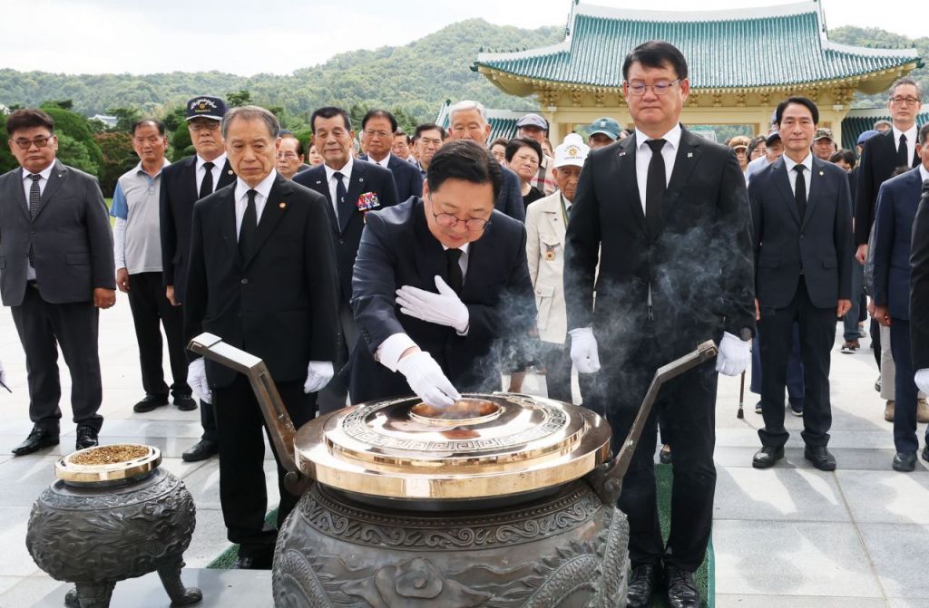 이장우 대전시장이 제80주년 광복절을 맞아 15일 오전 유성구 국립대전현충원을 찾아 순국선열과 호국영령을 참배했다.