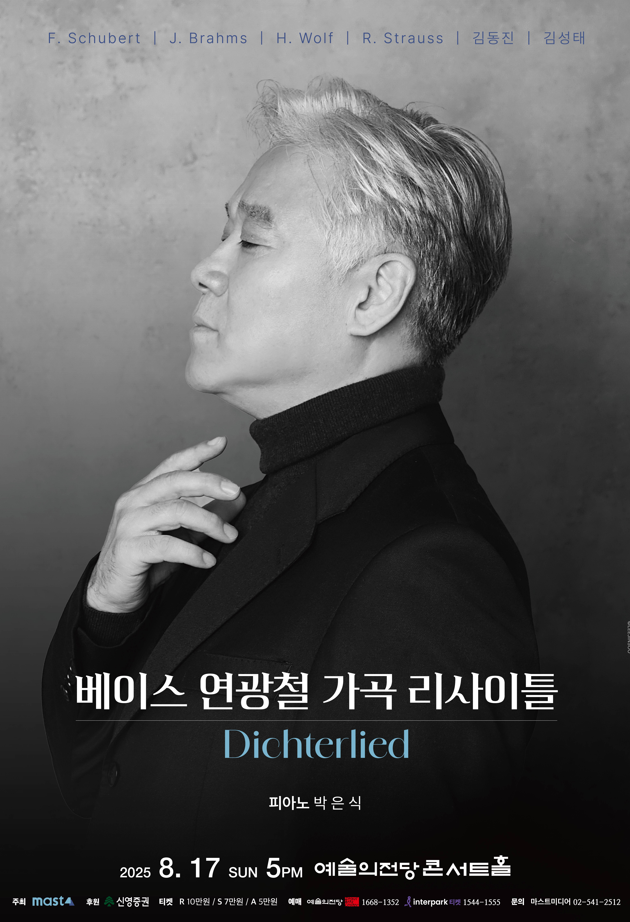 세계적인 베이스 연광철이 오는 17일 오후 5시 예술의전당 콘서트홀에서 '디히터리트(Dichterlied)'라는 제목으로 가곡 독주회를 한다.