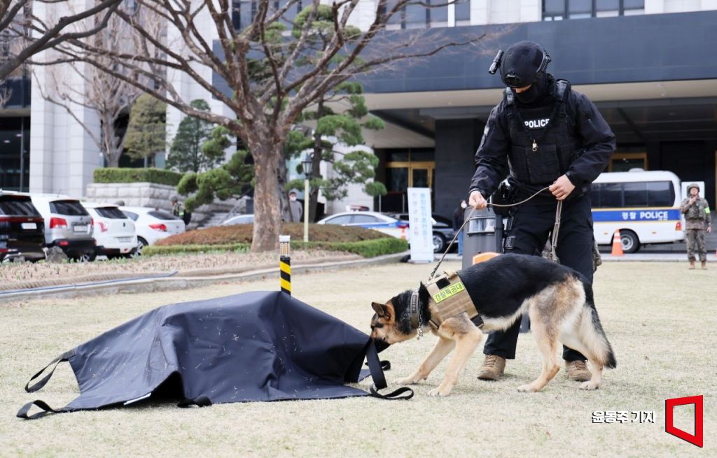 서울 종로구 정부서울청사에서 열린 관·군·경·소방 통합 방호훈련에서 불법 드론 제압 및 폭발물 처리 훈련을 하고 있다. 기사 본문과 무관.