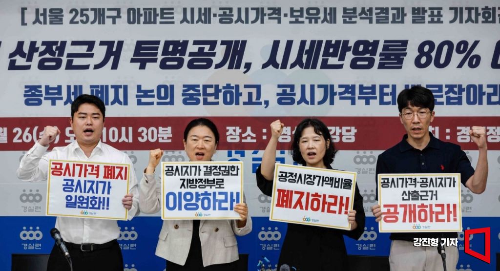 지난해 6월 서울 종로구 경제정의실천시민연합에서 경실련 관계자들이 서울 아파트 시세 및 공시가격, 보유세 분석결과 발표 기자회견을 하고 있다. 사진=강진형 기자aymsdream@