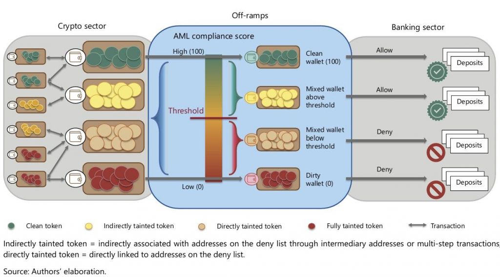 이를 통해 '허용 목록'에서 온 비교적 깨끗한 자금일수록 높은 값을 부여하고, '거부 목록'에 있는 것으로 알려진 오염 자금에는 낮은 점수를 부여한다. 각 나라의 금융당국은 자국 규제 환경에 맞춰 점수 기준치를 설정하고, 기준에 미달할 경우 현금화 허용 또는 거부를 결정할 수 있다. 국가마다 범죄 여부도 다르게 판단 가능하다.