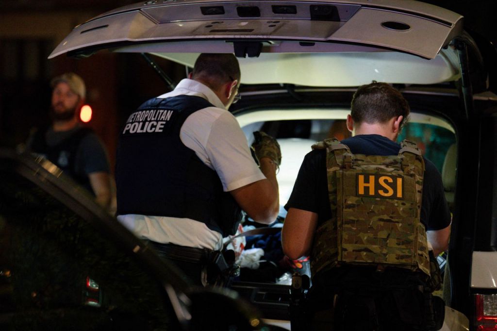 워싱턴DC에서 차량을 수색 중인 이민세관단속국(ICE) 요원들의 모습. 기사와는 무관. AFP연합뉴스