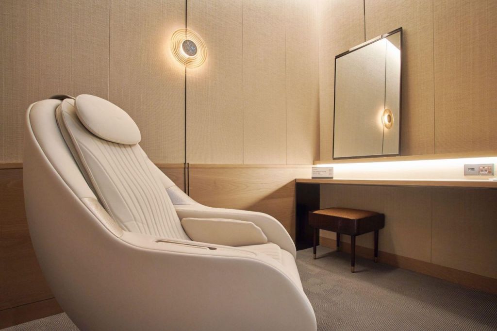 인천국제공항 제2여객터미널 대한항공 마일러 클럽 라운지 내 설치된 세라젬 파우제 M6. 세라젬