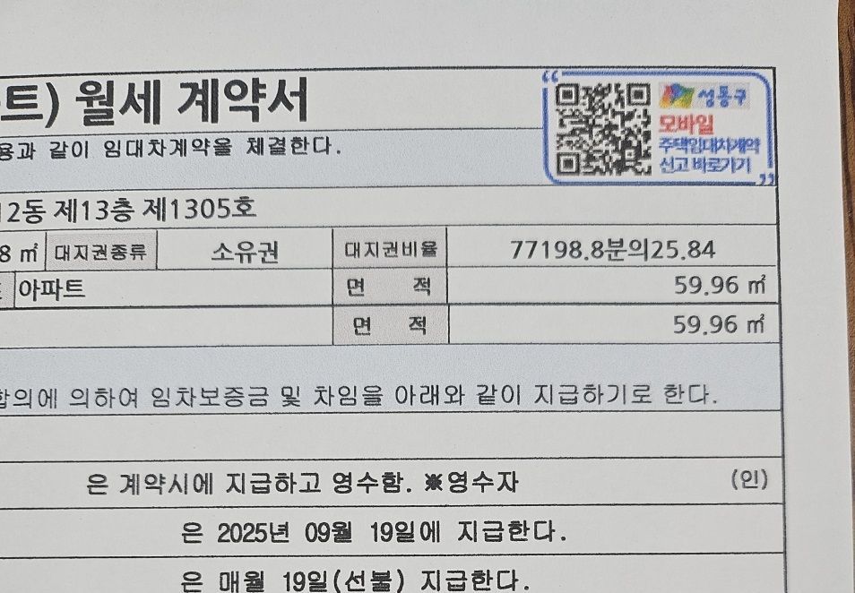 주택임대차계약 신고 QR코드 계약서 견본. 성동구 제공.