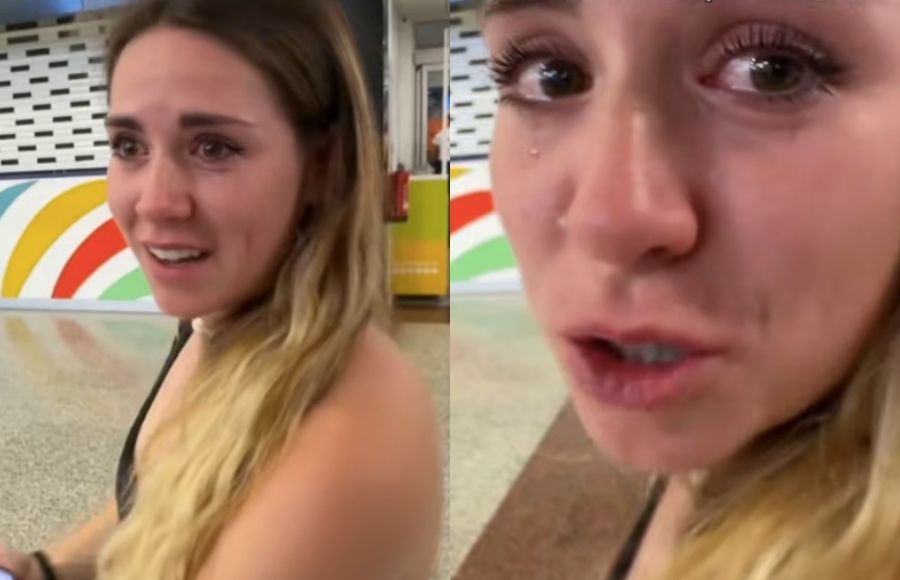 여성 여행객이 여행을 허가받지 못한 채 공항을 걸어가며 눈물을 흘리고 있다. 틱톡