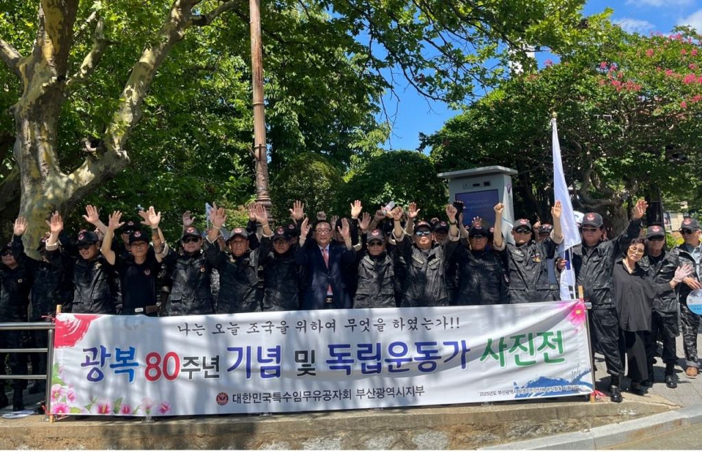 대한민국특수임무유공자회 부산시지부(지부장 김석종)는 지난 15일 부산 용두산 공원에서 '광복 80년 기념식과 독립운동가 사진전'을 열었다.