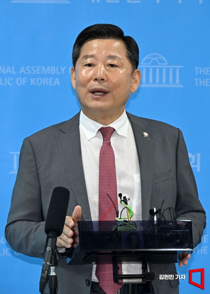 이철규 국민의힘 의원이 22일 국회 소통관에서 순직해병특검 수사 관련 입장 발표 기자회견을 마친 뒤 취재진의 질문에 답하고 있다. 2025.7.22 김현민 기자