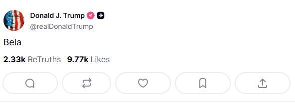 도널드 트럼프 미국 대통령이 'Bela'라고 올린 게시물. 트루스소셜 캡처, 연합뉴스