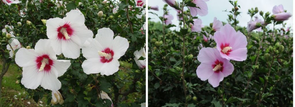 무궁화 원화(왼쪽)와 칠보(오른쪽) 비교 사진. 한국수목원정원관리원 제공