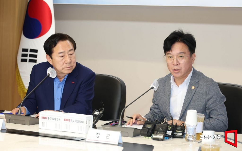 중소기업중앙회는 19일 오전 서울 영등포구 중기중앙회 건물에서 '노조법 개정 관련 고용노동부 장관과 중소기업인 간담회'를 열고 업계 우려 사항을 전달했다. 이날 자리에는 김기문 중기중앙회 회장과 김영훈 장관을 비롯해 김유진 고용노동부 노동정책실장, 조충현 고용노동부 노사협력정책관, 윤학수 대한전문건설협회 회장, 박평재 한국표면처리공업협동조합 이사장, 이재광 한국전기에너지산업협동조합 이사장, 장규진 한국기계공업협동조합연합회 회장, 이택성 한국자동차산업협동조합 이사장, 최금식 부산조선해양기자재공업협동조합 이사장 등 경영계와 노동계를 대표하는 인물들이 각각 참석했다.