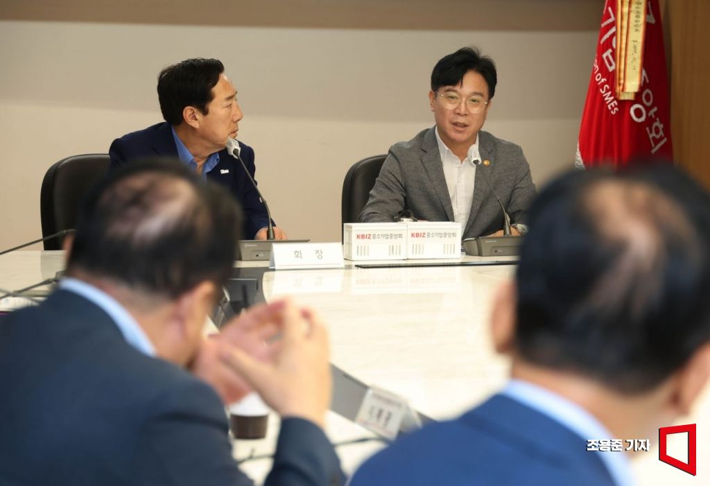 김영훈 고용노동부 장관이 19일 서울 여의도 중소기업중앙회에서 열린 노조법 개정 관련 중소기업인 간담회에 참석 발언을 하고 있다. 이날 김장관은 취임후 경제단체방문 첫 일정으로 중소기업중앙회를 방문했다.