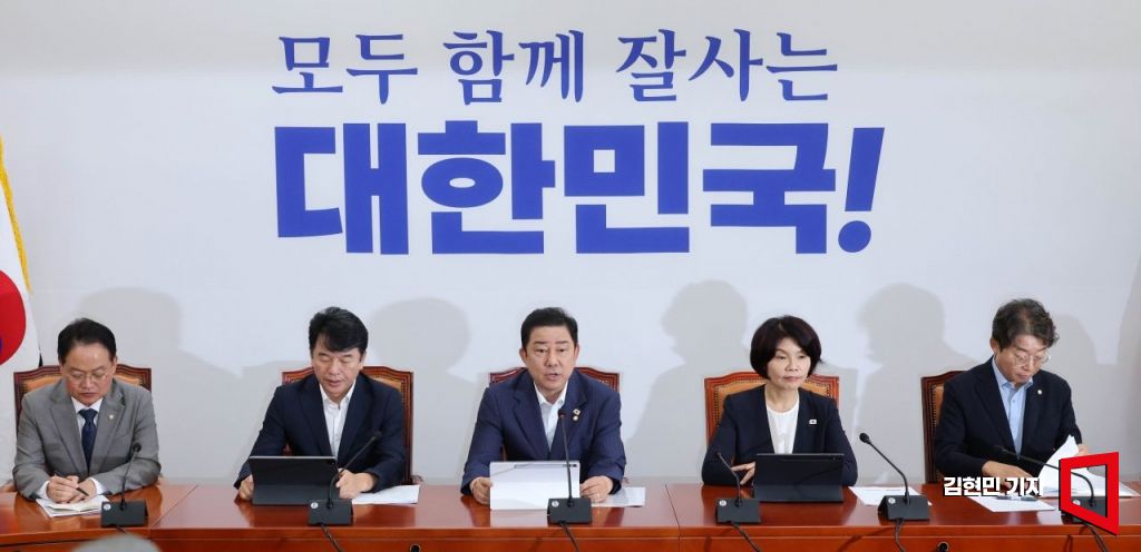 김병기 더불어민주당 원내대표가 19일 국회에서 열린 원내대책회의에서 발언하고 있다.