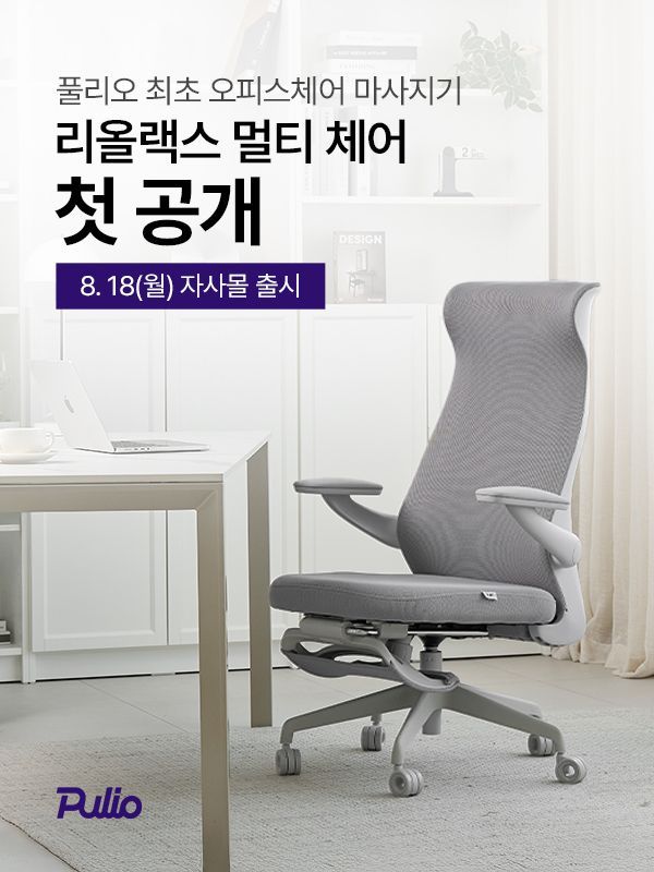 리올랙스 멀티 체어는 풀리오 자사몰에서 구매할 수 있고, 론칭 기념 댓글 이벤트도 진행한다. 자사몰 기획전 페이지에 '휴식이 필요한 순간'을 댓글로 남기면 추첨을 통해 리올랙스 멀티 체어를 증정한다.