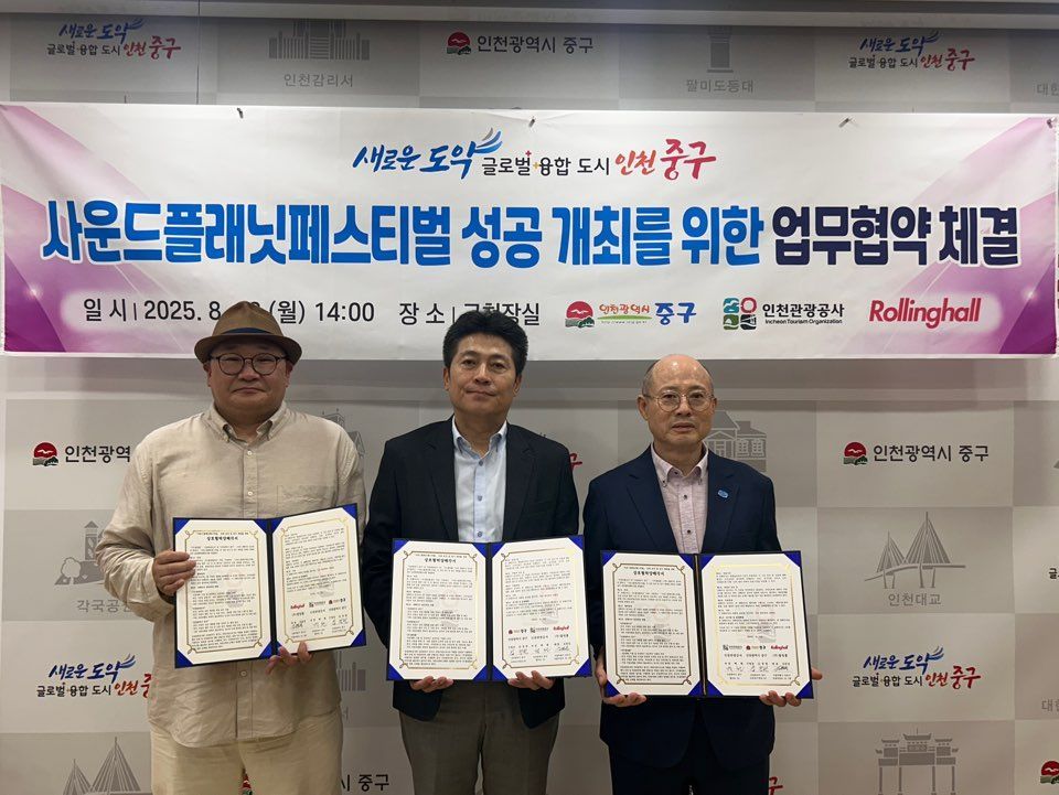 인천관광공사는 18일 인천 중구, 주최·주관사인 ㈜롤링홀과 '사운드 플래닛 페스티벌 2025'의 성공적인 인천 개최를 위한 업무협약을 체결했다.