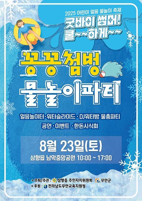 전남 무안군 삼향읍 주민자치위원회가 주관하는 '2025 어린이 얼음 물놀이 축제'가 오는 23일 삼향읍 남악중앙공원 일원에서 열린다.