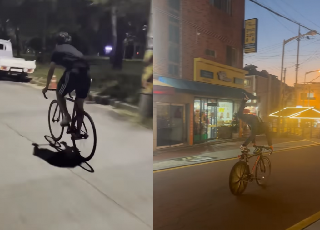 도로에서 픽시 자전거를 타고 있는 10대들. 유튜브 캡처