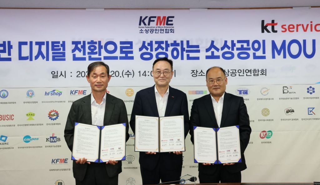 소상공인연합회는 KT 및 KTS남부와 '소상공인의 성장과 도약을 위한 업무협약(MOU)'을 체결했다고 20일 밝혔다.