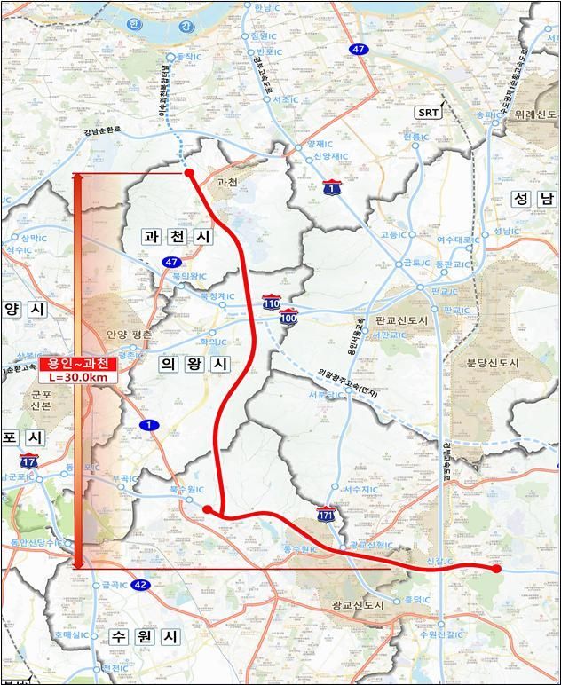 용인-과천 지하고속도로 신설 사업개요 및 위치도. 국토교통부 제공