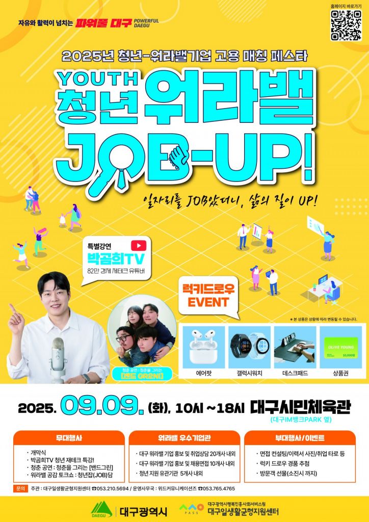 행사에는 지역의 워라밸 우수기업 30개사가 참여하며 청년 유관기관과 다양한 취업지원 부스도 함께 운영된다. 워라밸 우수기업인 (주)신신엠앤씨, (주)카펙발레오, SSLM(주), CGF주식회사 등은 사전 면접자를 모집하고 있으며 (주)엑스코, 푸른방송, 상신브레이크(주), 주식회사 디에스그룹 등은 현장 상담을 통해 취업 기회를 제공할 예정이다.