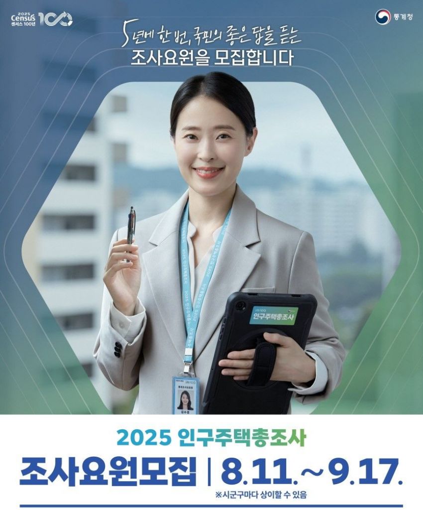'2025 인구주택총조사'는 10월 22일부터 11월 18일까지 전국적으로 실시된다. 표본가구는 인터넷·전화조사를 통해 먼저 참여할 수 있으며, 11월 1일부터는 조사원이 직접 가구를 방문해 조사를 진행한다. 다만 이미 비대면 방식으로 응답한 가구는 방문 조사가 생략된다.