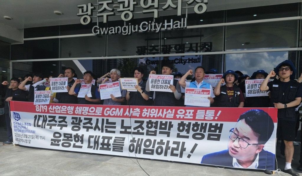 노조는 이날 광주시청 앞에서 기자회견을 열고 "GGM 경영진은 허위 사실을 퍼트려 노조를 사회적으로 압박하고 혐오를 조장했다"며 "명백한 공갈·협박이다. GGM 1대 주주인 광주시는 윤몽현 대표이사를 즉각 해임해야 한다"고 주장했다.