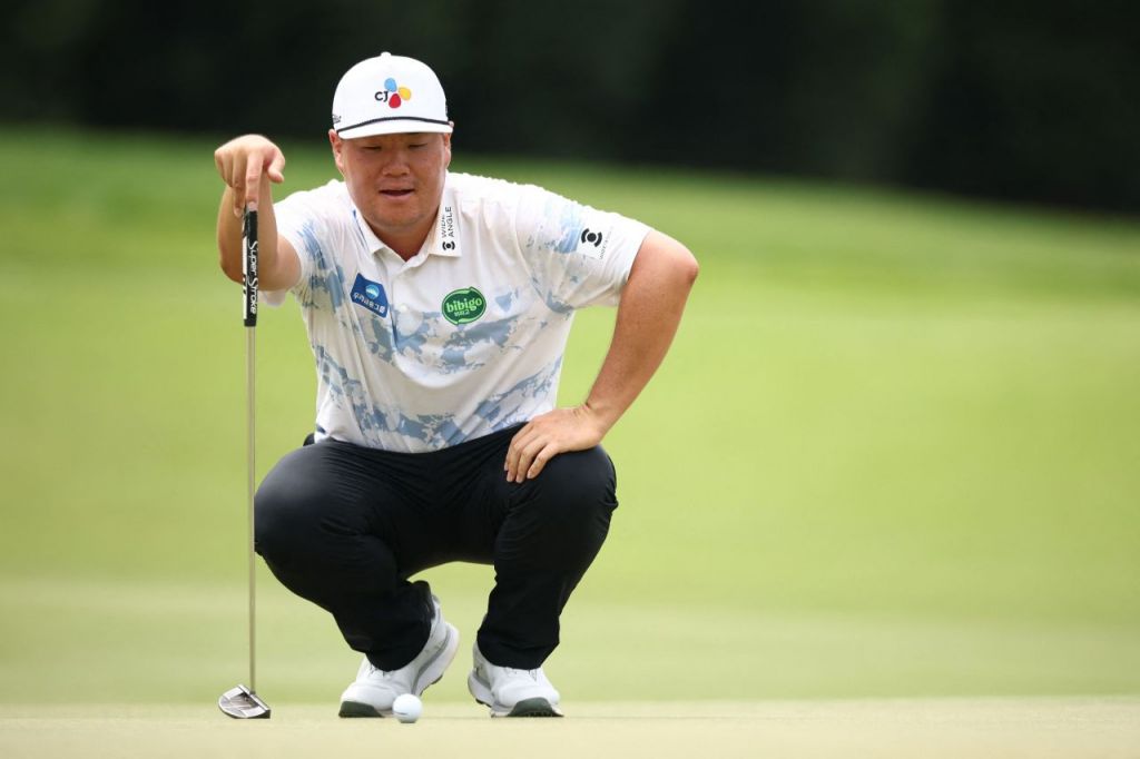임성재가 투어 챔피언십 1라운드 14번 홀에서 그린을 읽고 있다. 애틀랜타=AFP·연합뉴스