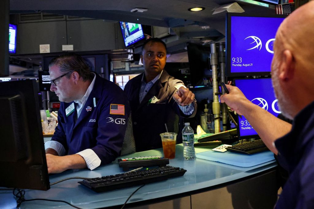 앞서 뉴욕증시는 21일(현지시간) Fed의 잭슨홀 미팅을 하루 앞두고 매파적(통화긴축) 발언에 대한 경계감이 짙어지면서 일제히 하락 마감했다. 블루칩 중심의 다우지수는 전 거래일보다 152.81포인트(0.34%) 밀린 4만4785.5, 대형주 중심의 S&P500지수는 25.61포인트(0.4%) 내린 6370.17, 기술주 중심의 나스닥지수는 72.545포인트(0.34%) 떨어진 2만1100.312에 거래를 마쳤다.