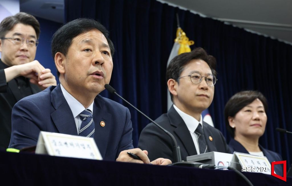 구윤철 경제부총리 겸 기획재정부 장관이 22일 서울 종로구 정부서울청사에서 열린 새정부 경제성장전략 관련 관계부처 합동 브리핑에 참석 취재진의 질문에 답하고 있다. 이날 브리핑에는 배경훈 과학기술정보통신부 장관, 송미령 농림축산식품부 장관, 한성숙 중소벤처기업부 장관, 문신학 산업통상자원부 1차관이 참석했다. 2025.8.22 조용준 기자