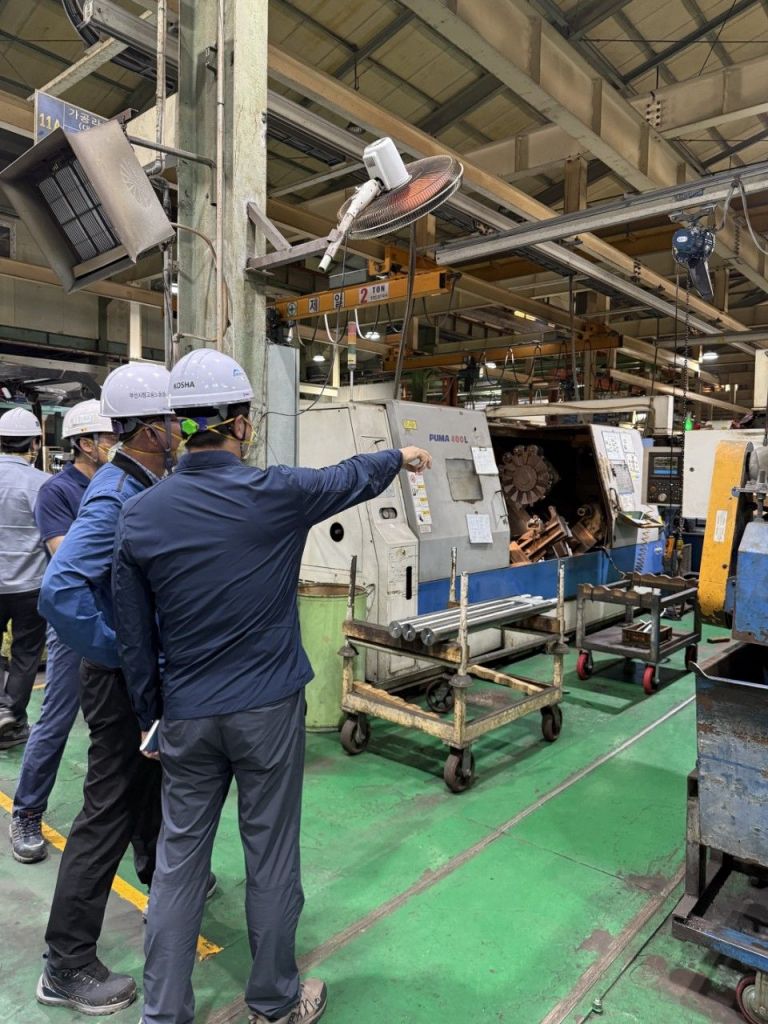 이날 점검은 고용노동부와 안전보건공단이 추진하고 있는 '안전한 일터 프로젝트'의 강조사항 중 하나인 ▲12대 핵심 안전수칙 ▲여름철 폭염·호우·태풍 대비 체계를 중점으로 점검했으며, 제조업 노동자들의 안전관리를 위한 현장 내 안전장치, 휴게시설 등을 확인했다.