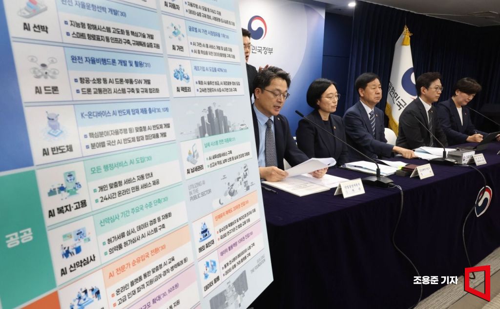 구윤철 경제부총리 겸 기획재정부 장관이 22일 서울 종로구 정부서울청사에서 새정부 경제성장전략 관련 관계부처 합동 브리핑을 하고 있다. 이날 브리핑에는 배경훈 과학기술정보통신부 장관, 송미령 농림축산식품부 장관, 한성숙 중소벤처기업부 장관, 문신학 산업통상자원부 1차관이 참석했다.