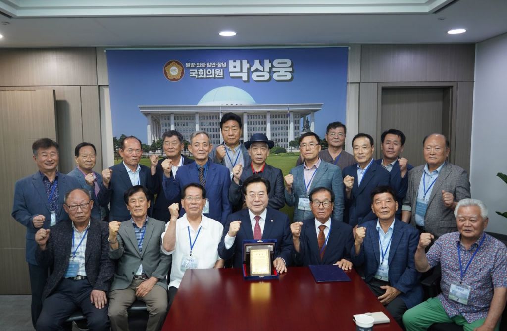국민의힘 박상웅 의원(경남 밀양·의령·함안·창녕, 원내부대표)이 20일 국회를 방문한 모현계 35문중 회원들로부터 '합강권역(낙동강·남강) 풍류정원 조성사업' 예산 확보에 대한 감사패를 전달받았다고 22일 밝혔다.
