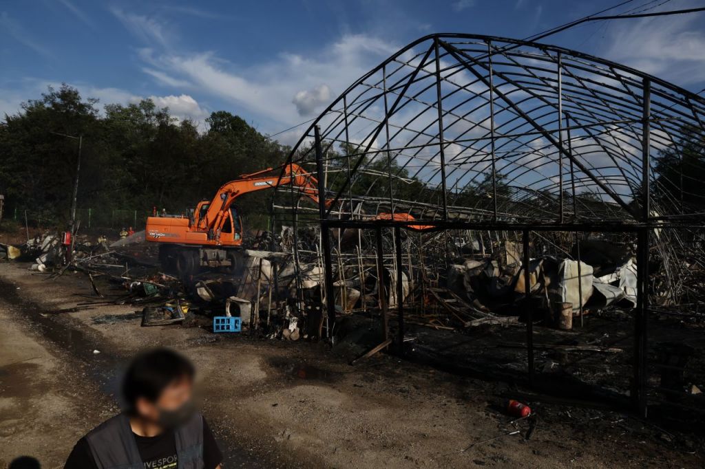 22일 오후 화재가 발생한 서울 강남구 세곡동 화훼단지 인근에서 소방대원들이 잔불 정리를 하고 있다. 연합뉴스