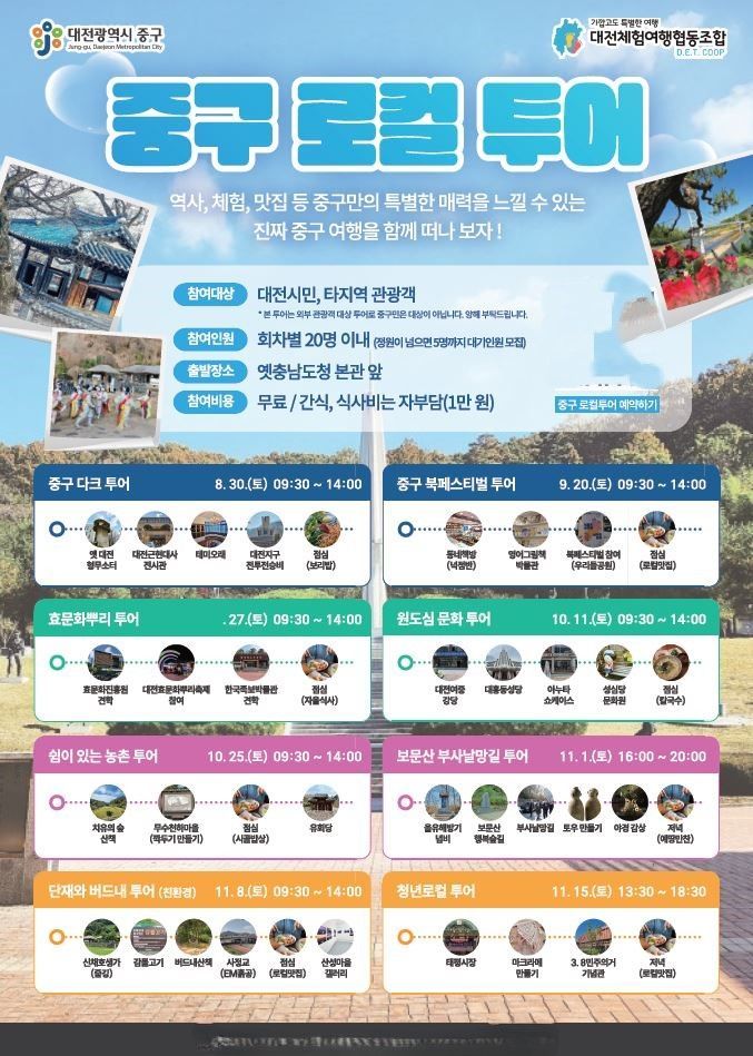대전 중구가 지역의 역사와 문화자산을 연계한 테마형 로컬투어를 오는 30일부터 11월 18일까지 운영한다.