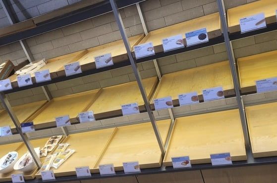 SKT 고객감사제로 매대가 텅 비어버린 서울의 한 파리바게뜨 매장 매대 모습. 사회관계망서비스(SNS) 캡처
