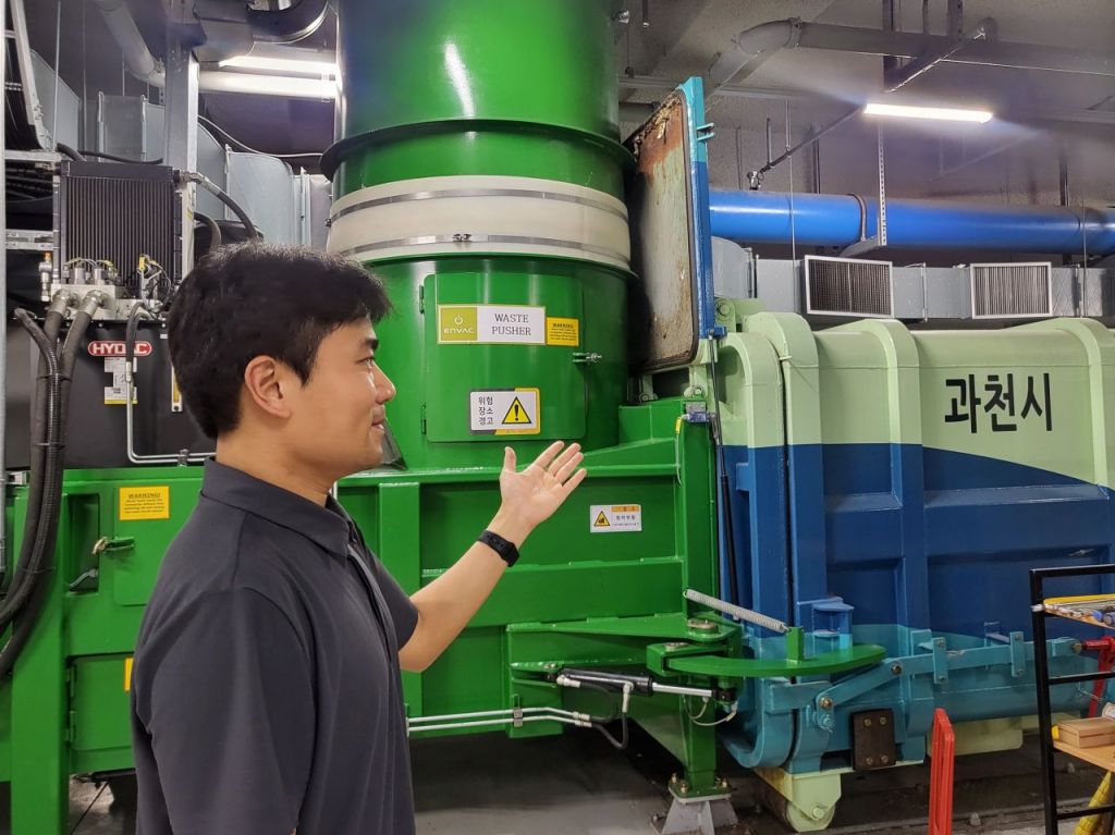 김병진 엔백 한국 유지관리부 대리가 과천자이에 설치된 엔백 시스템에 대해서 설명하고 있다. 김 대리는 "주민들이 버린 쓰레기는 이곳에 모여 한 번에 이송된다"고 말했다. 이현주 기자